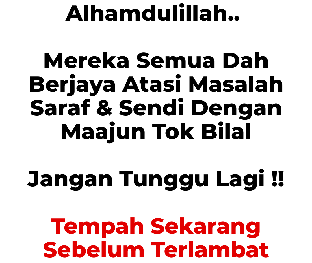 Bagi anda yang mengalami masalah saraf & sendi, sakit lutut, angin, kebas kebas dan seangkatan dengannya, anda digalakkan untuk amalkan Maajun Tok Bilal Ni.